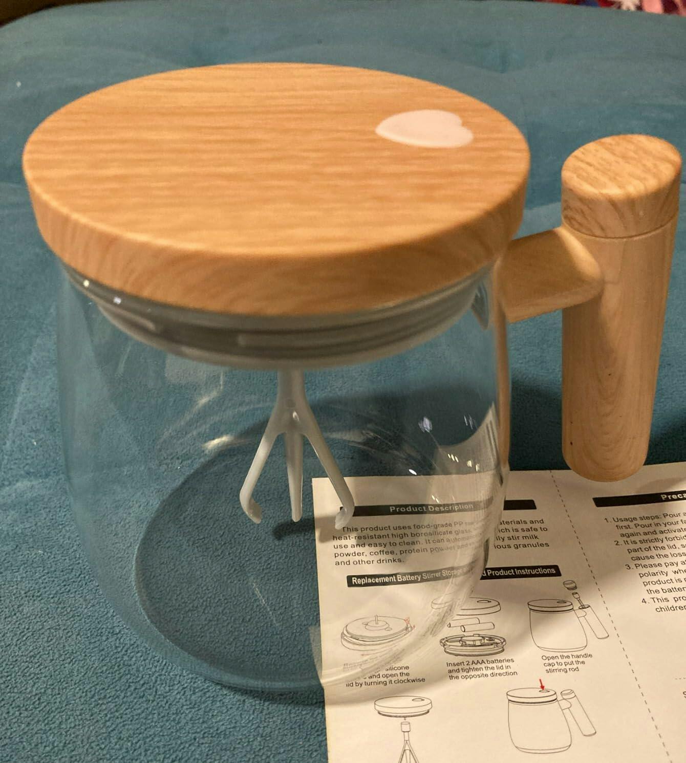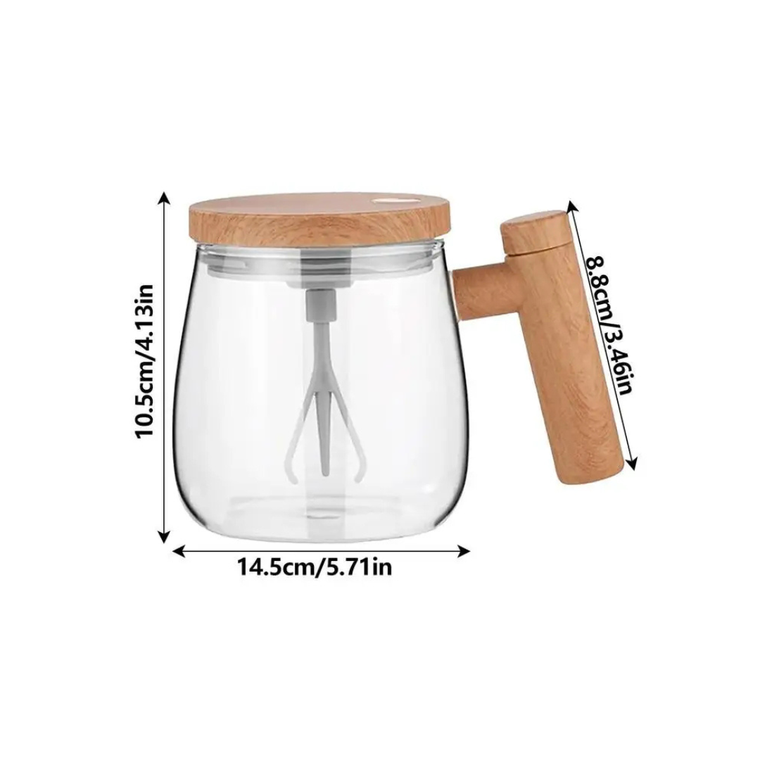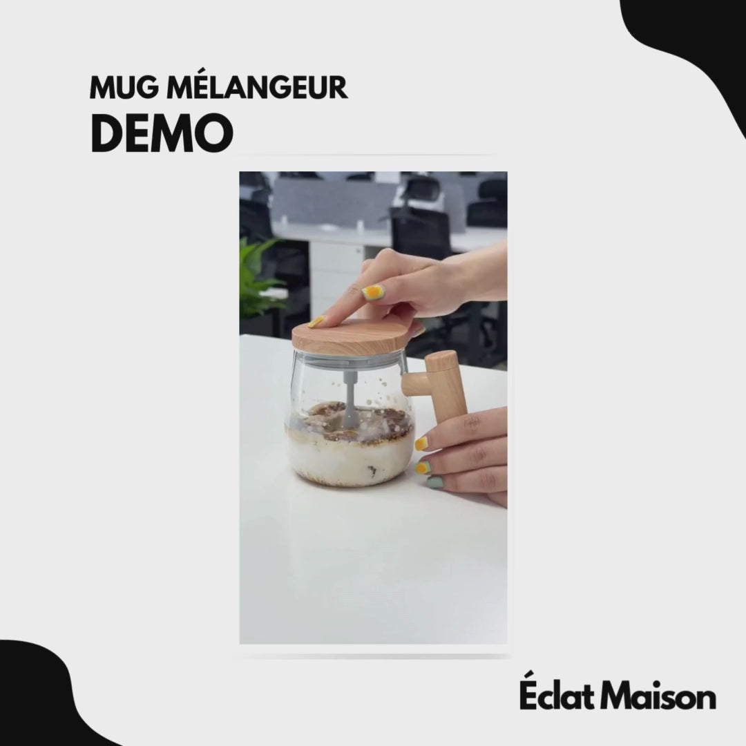 Fabriqué en verre durable et équipé d'un couvercle en bois élégant, le Mug Mélangeur ne se contente pas d'être esthétique, il garde également vos boissons à la température idéale et prévient les éclaboussures.